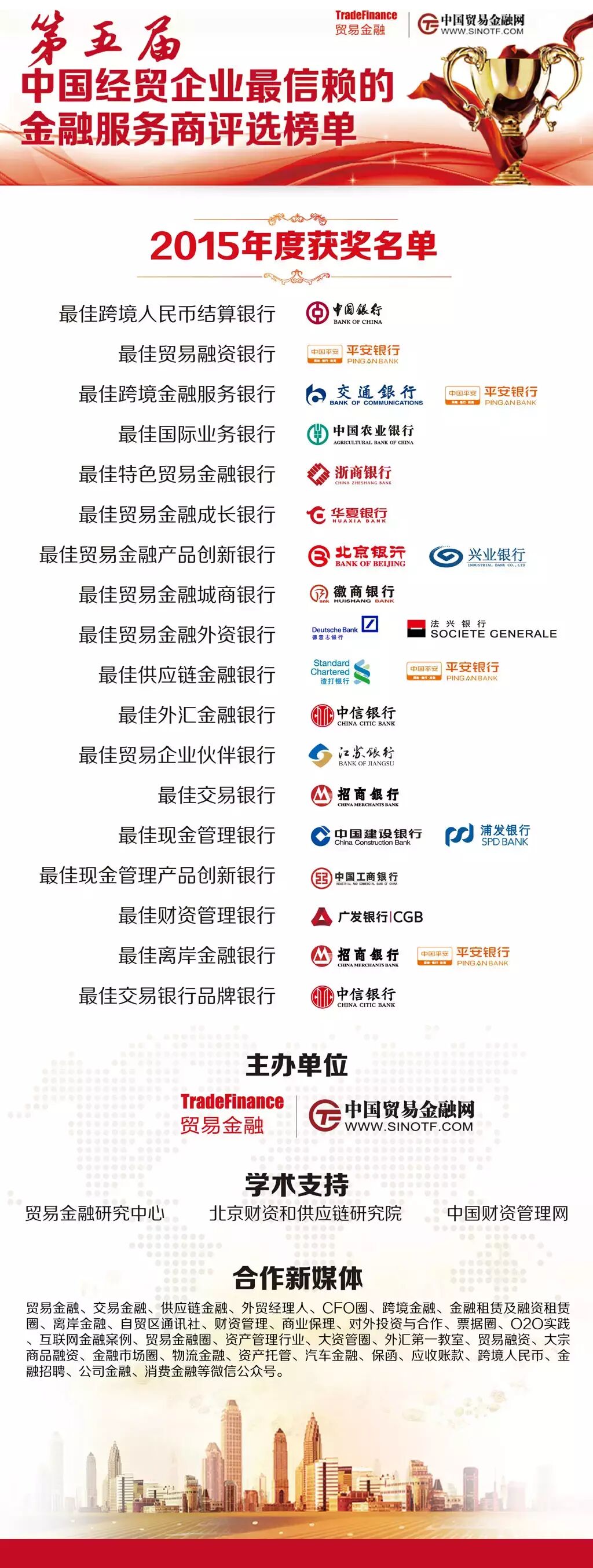 2015贸易金融银行哪家强?第五届中国经贸企业最信赖的金融服务商榜单揭晓!(附入选理由)