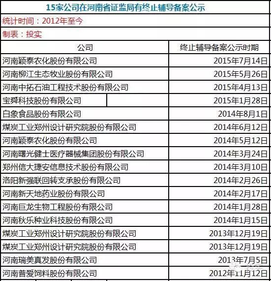 2012年至今,共17家公司在河南省证监局有终止辅导备案公示: