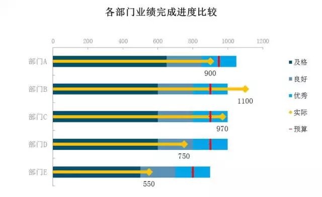 四、更复杂的完成进度对比分析图(子弹图)