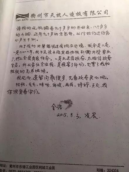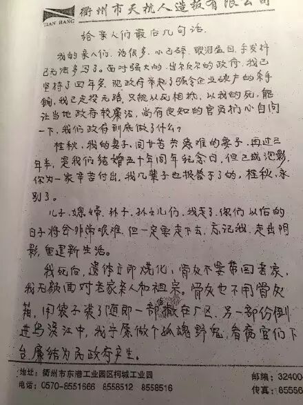 “人在干,天在看!”——衢州民企老板遗书的遗书。