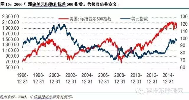 从历史上观察美联储的美元策略是有益的。在2000年科网泡沫后,为了减轻强势美元对经济和市场的伤害,美元开始走弱,2002年底美股开始见底。为了弱化美股二次冲高后国际资本的兑现要求,2005年美元继续选择继续贬值以锁定资本,抑制其外流。2008年“次贷危机”爆发后,美国凭借美元特权向全世界输出风险,并成功通过三轮QE恢复经济元气。无论从经济的强健程度,还是历史的一致性看,美联储存在选择弱势美元的可能。这种弱势美元的路径并不一定是以美元指数掉头向下的形态展开,而更可能是一种震荡维持,波动向下。原因在于欧、日央行货币宽松仍有余力,这抑制了美元向下的速率。“上有顶,下有底”可能是2016年上半年美元弱势的特征。从更长期角度看,一旦欧、日货币贬值空间探明,美元趋势走弱仍是可以看到的。