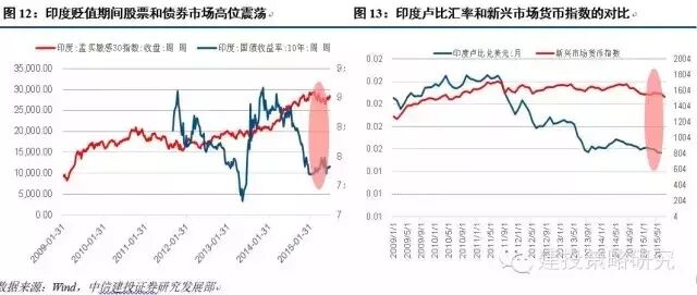 从下面印度的案例可以看到,发展中国家推进改革,主动贬值不会产生危机式资本外流。中印在工业化的位置不同,印度改革打造“制造业工厂”,扩大基础设施建设,而中国则是产业升级和结构转型。发展中国家如果主动推进改革,释放要素活力,虽在美元升值周期,并不一定遭到国际资本的抛弃,依然可以获得增长的弹性。改革发力下的主动贬值是有序的、利好于经济的。