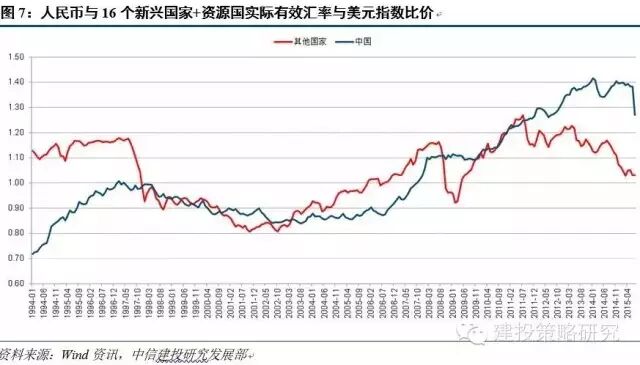从另一个角度观察,盯住一篮子货币同时面临着一定风险。当局的初衷是希望一方面借CFETS稳住人民币汇率预期;另一方面释放美元的贬值压力。背后默认在美国加息周期中美元强势的假定,即是希望在国内资产价格尽可能稳定的前提下化解人民币兑美元的贬值压力。这种战略实施的风险在于一旦美元走弱,人民币资产价格将会被维持到一个非合意的高位。当美国通过贬值消化完三轮QE积累起的资产泡沫后,紧缩周期将加大人民币汇率稳定的难度。因此从更现实的角度出发,现阶段当局应该释放人民币贬值压力,进行资产重估,而不是维持资产价格泡沫。