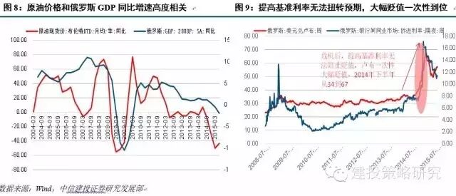 起因:2014年7月份后,欧日在经济回落下开启宽松周期,走向QE和资产负债表的夸张,美国经济基本面强势,美元强势周期,冲击大宗商品价格。原油大幅下跌,叠加了当时地缘政治冲突的预期,俄罗斯基本面的预期极度恶化,资本外逃。