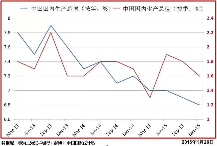其次是中国的经济增长前景出现明显放缓。中国2015经济增长只有6.9%,不但未能做到保7,更创下25年来的最慢增长的水平。虽然中国国务院把2016-2020年的经济增长目标订定在(平均每年)6.5%,但国际货币基金组织却因为油价以及外围因素不稳,因此直言今年中国的经济可能会放慢至只有6.3%增长。国际货币基金组织更警告,中国的需求增长大幅放慢依然是全球增长的最大风险。