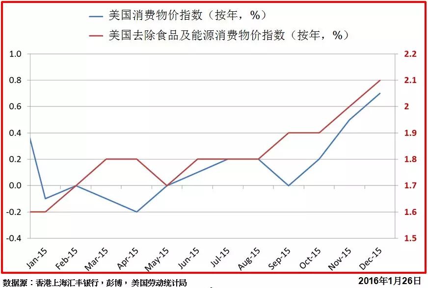 美国联储局终于在去年12月份兑现承诺,把目标利率上调25个基点,并且公开点阵图,把2016年的利率中位数订定在1.375%。但这个目标还未被广泛认同。市场上甚至开始怀疑,美国上半年加息的可能性,主要原因跟外围因素有关。现在让我们先了解一下近期美国以及外围的经济情况。