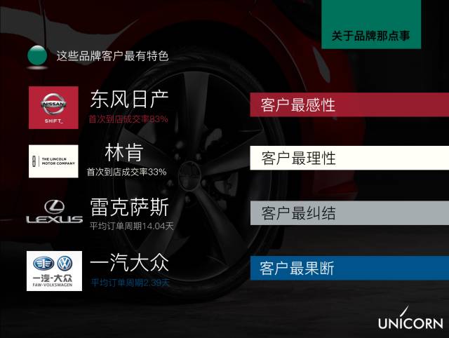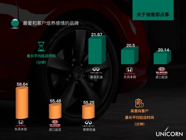 性感的品牌走感性路线,日系韩系胜出。客户在店时间长便能情深。英菲尼迪、东风本田代表了日系品牌高端和中端最能留住客户的品牌。