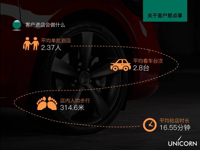 16分钟内,314米,2.8台车,2.37个人,这就是购车客户的行为画像,以此为依据,可提高接待效率。