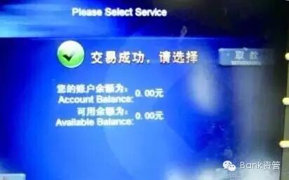 出门,走到银行ATM机前,插入银行卡,输入密码,查询余额: