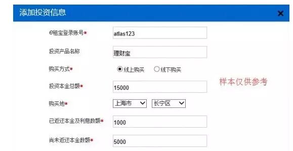 该平台目前提供“e 租宝”和“芝麻金融”两种产品的申报。投资人可以通过“添加投资信息”录入自己的投资信息,并通过“添加流水”增加交易流水信息明细。用户确认投资信息和流水无误后,点击“提交申报单”,即可进入审核流程。