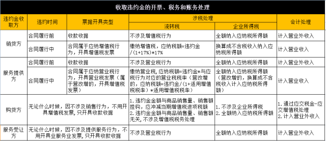 违约金因其性质特殊,涉及到发票、税务及账务处理问题。