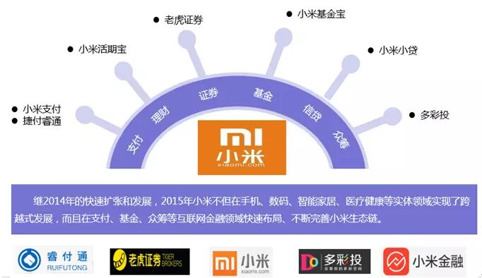 继2014年的快速扩张和发展,2015年小米不但在手机、数码、智能家居、医疗健康等实体领域实现了跨越式发展,而且在支付、基金、众筹、证券等互联网金融领域快速布局、不断完善小米生态体系。