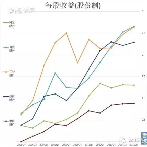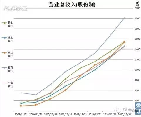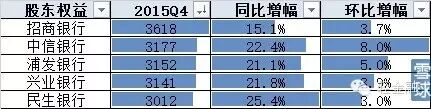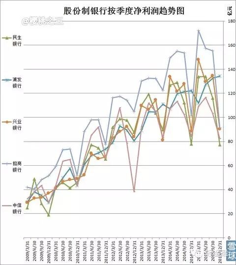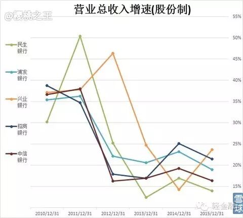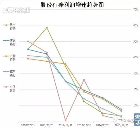 下降趋势较为明显。2016年是否会有负增长出现呢?中信貌似走稳,招商/民生估计没人相信,所以这五家大概率不会出现年度负增长。但单季度(尤其是四季度)倒是可以的。