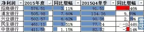 招商银行、中信银行和民生银行的四季度单季净利润都出现了负增长。银监会刚出的数据显示,整个银行业第四季度净利润单季增长为3.38%。