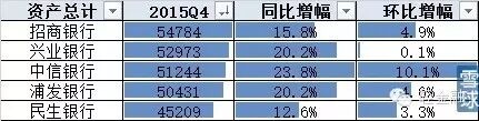中信银行总资产同比增速最快,兴业银行年中曾经超过招商银行,除了民生银行,总资产都进入了5万亿时代。