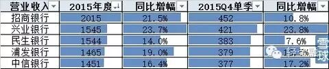 截止2月17日晚间,五大股份制银行(招商银行/民生银行/浦发银行/兴业银行/中信银行)的2015年年报的业绩快报都披露完毕。这里将这些快报放在一起对比下: