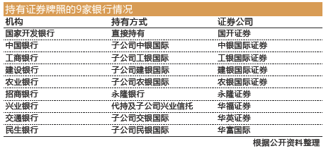 9家银行握有证券牌照