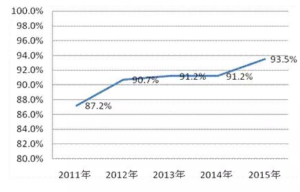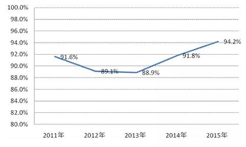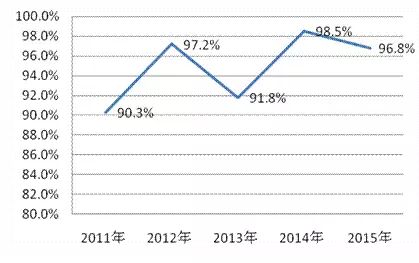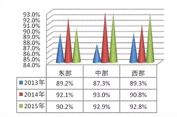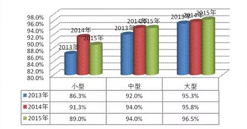 图4:2013年至2015年大中小型企业产品抽样合格率对比图