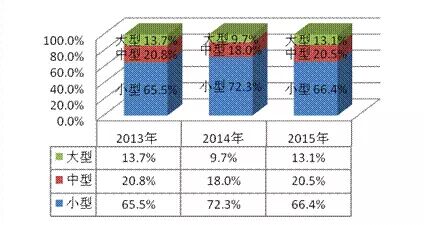 图3:2013年至2015年抽查不同生产规模企业数量对比图