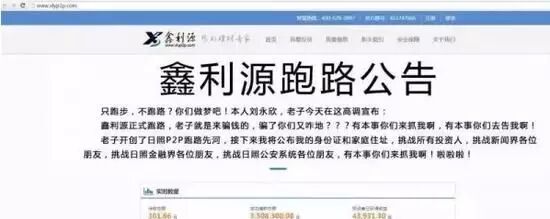 2月18日,屎上最奇葩的P2P平台公告诞生了。这家“鑫利源”居然明目张胆的说:“劳资就是来骗钱的,骗了你们又咋地?”并称“要挑战所有投资人、新闻界、公安系统”。这家平台刚上线的口号是:“做良心平台,只跑步,不跑路”。