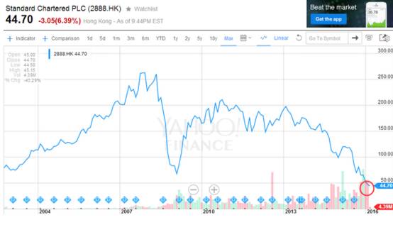 2016年,银行股开局不利。坏账成为了困扰全球银行业的一大因素。渣打去年贷款减值损失创下记录,全年意外亏损;德银受资产减记影响,全年净亏68