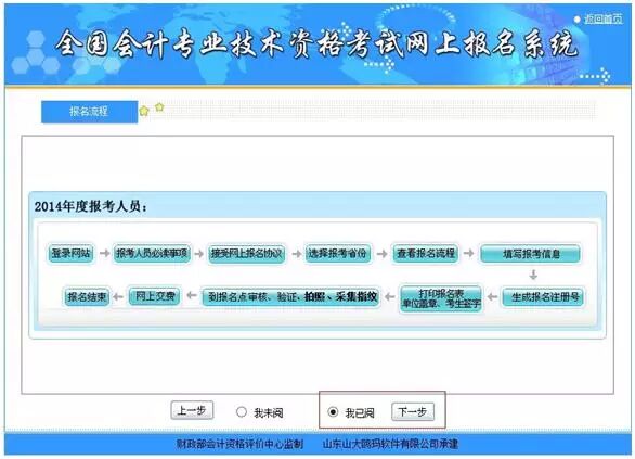来源:高顿部落(ID:gdbuluo) 第一步:考生登录报名页面后,根据自己是“首次报考人员”还是“非首次报考人员”,选择注册或登录。 第二步:点击进入以后,查看网上报名须知,完全同意以后,点击下一步。 第三步:进入报名入口,选择所在省份。 第四步:进入报名流程图,仔细查看后,点击下一步。 第五步:填写个人信息及报考级别,点击下一步。 第六步:认真填写个人报考信息,点击下一步。 第七步:进入考试费用及设置登录密码页面,设置好登录密码,点击下一步。 第八步:信息输入完毕后,自动生成报名注册号,要牢记。最后打印打印报名信息表即可。