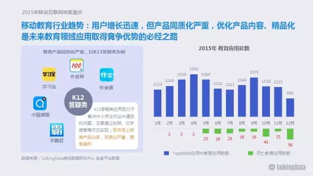 移动教育行业趋势:用户增长迅速,但产品同质化严重,优化产品内容、精品化是未来教育领域应用取得竞争优势的必经之路