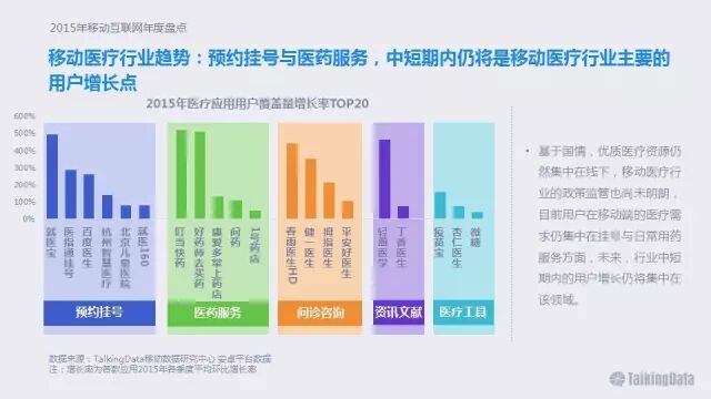 移动医疗行业趋势:预约挂号与医药服务,中短期内仍将是移动医疗行业主要的用户增长点