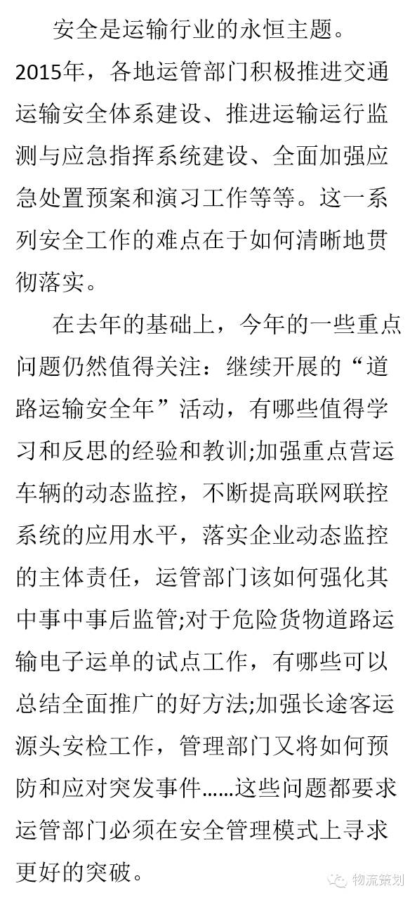 2016年全国交通运输工作会议对新一年的运输管理工作提出了一系列新的要求,各地的运管工作会也都在陆续召开。整体来看,行业改革将日趋深入,法治建设将逐步完善,服务水平将不断提升,“互联网+”将渐入佳境。改革、法治、服务、智慧等将成为2016年运输管理工作的关键词。