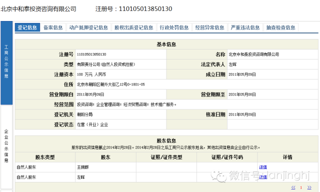 北京中和泰投资咨询有限公司的股东链家地产董事长左晖外还有链家地产副总裁王拥群。
