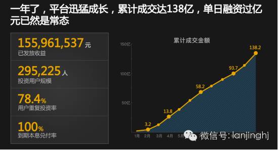 链家理财2015年报显示,平台2015年累计成交138亿,月平均交易额超过10亿,单日融资过亿,以链家理财两个月至一年的标计算, 存量起码在20亿以上。