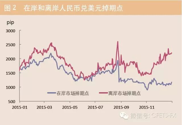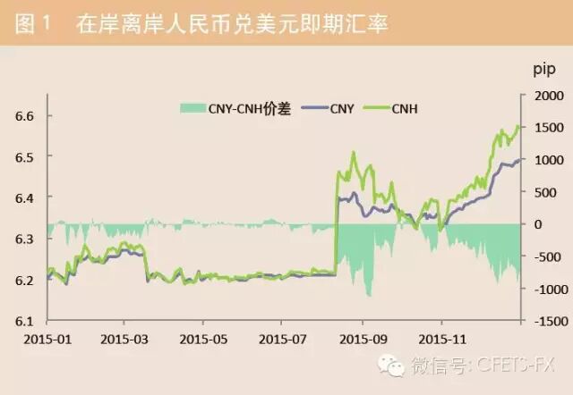 2015年,在岸(CNY)和离岸(CNH)人民币兑美元即期汇率全年分别贬值4.43%及5.36%,走势总体呈现三个阶段。全年人民币走势特点为,在市场一旦具备贬值预期时,CNH始终较CNY波动更剧烈,两者价差也拉得更大,离岸市场对CNH的贬值预期也更强烈。