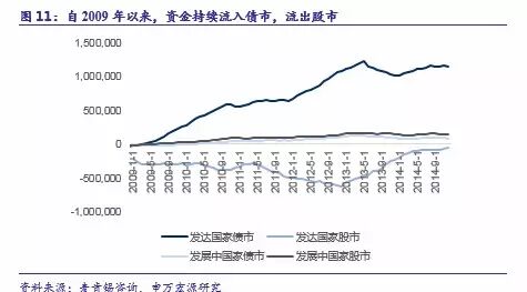 (7)2015年:美国加息预期反复,除美国外的其他地区以宽松为主,利率持续下行,资产管理机构资金大量流向债券。