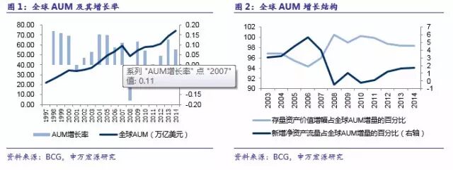 全球资产管理规模增长主要受存量资产价值上升推动