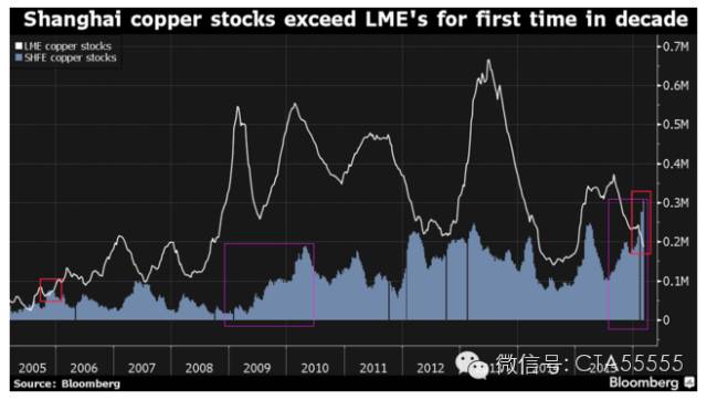 在经历了去年上半年的暴跌之后,上期所铜库存自8月底以来稳步增加,迄今已增长一倍,至史上最高水平。彭博社统计显示,这是十多年以来,上期所铜库存首次超过LME铜库存。