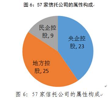 在自有业务收入增长率超过50%的信托公司中,民企控股占到25%,显著超过其在信托公司中15.8%的占比。近两年,一些民营控股信托公司积极转型,摈弃传统业务,将私募投行、资产管理、财富管理视为新的业务方向,并积极从银行、证券、基金、信托等机构引进大量优秀管理人才,抢占生态位高地,在转型中走在了行业的前列。这是否证实了灵活的制度是信托公司转型成功的先决条件?事实并非如此简单,进一步分析发现,多数民企控股的信托公司自有业务的快速增长主要源自上一年度极低的基数,少量的增加即可实现自有业务增幅的较大改变。另外,一些上年度自有业务规模庞大的央企控股、地方国企控股的信托公司,如华润信托、重庆信托等则继续保持了自有业务的快速增长。