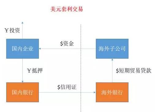 几年前,我在读某造船企业的年报时发现了明显的异常。这个公司的理财投资占了60%以上的利润,已经超过了造船主业。资产负债表上价值高达百亿人民币的大量境内理财信托投资靠的是大量境外美元贷款支撑。企业在国内抵押一部分人民币,获得全额的美元信用证,相当于获得了金融杠杆。企业的海外子公司凭借母公司在国内银行开出的美元信用证担保,从海外银行获得短期美元贸易贷款。然后海外子公司把获得的美元资金以各种方式汇入国内,提供给母公司在国内投资获利。