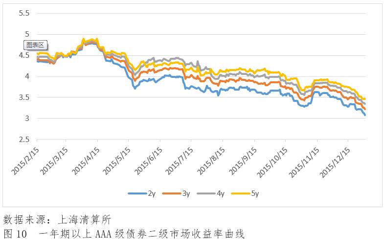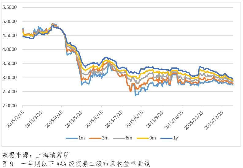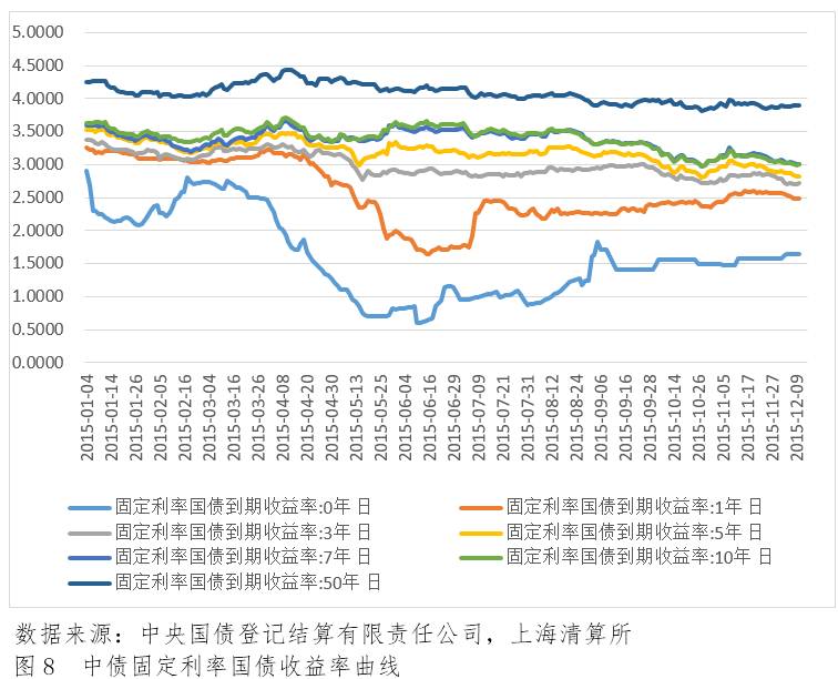 2015年,央行采用较为宽松的货币政策,多次下调存款准备金、存贷款基准利率,对支持小微企业、“三农”以及重大水利工程的金融机构实行定向降准,推广常备贷款便利等措施,为市场提供了宽裕的流动性,带动市场利率下行。债券收益率曲线在全年保持震荡下行的趋势。