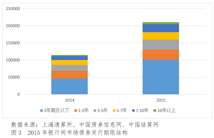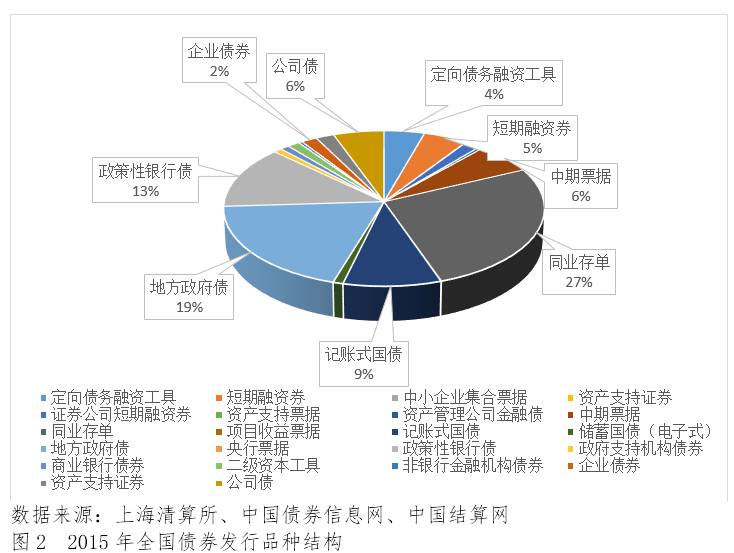 2015年,债券市场增量和规模快速扩大,全年发行规模达22,3万亿元,同比增长87.5%,其中银行间债券市场发行量达到21.0万亿元。全市场托管总量达47.9万亿元,银行间债券市场托管量达43.9万亿,成交量同比大幅增长,拆借、现券和债券回购累计成交608.8万亿元,同比增长101.3%。全年债券收益率曲线大幅下移,信用类债券融资规模大幅增加。债券市场对内放松管制与对外开放并行,机制与产品创新不断,市场基础设施间差异化竞争有序进行,形成改善服务、提高市场效率的良性发展格局。同时信用违约事件增加,主体和券种范围都有所扩大。