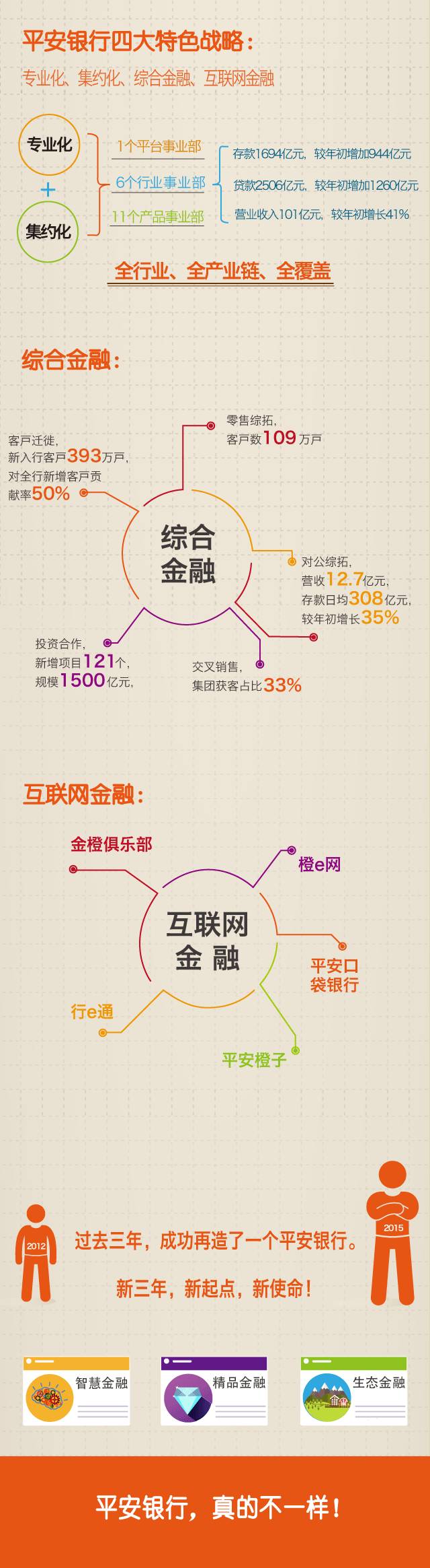 2015年是平安银行三步走战略成果显现和业绩收获的一年,平安银行已走过一个完整的“三年规划”,成功实现了“再造一个平安银行”的战略目标。