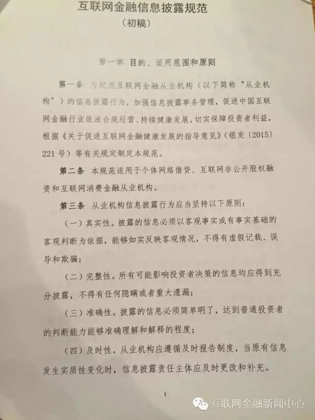 规范互联网金融的发展,信息披露要先行。3月10日,央行条法司、科技司组织中国互联网金融协会部分成员单位对《互联网金融信息披露规范》(初稿)进行讨论。