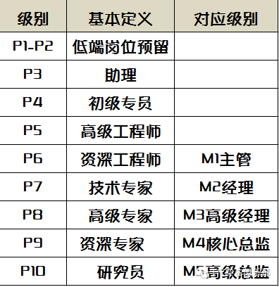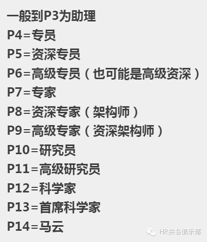 阿里的职称是这么评价的,大部分都归纳在P序列 ,员工的title+工种。比如P7产品经理=产品专家。