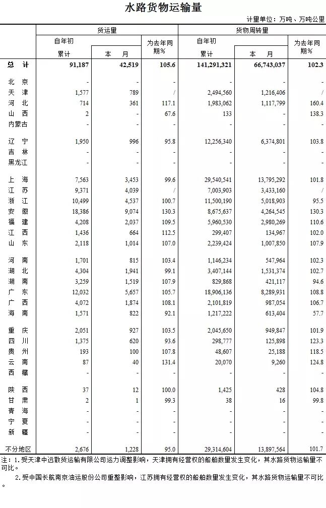 2016年2月公路货物运输量2016年2月水路货物运输量2016年2月规模以上港口货物、旅客吞吐量来源:交通运输部