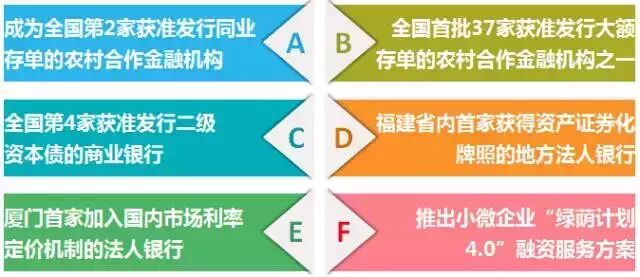 3年励精图治换来的累累硕果,源自地方政府、各监管单位及广大股东的鼎力支持,也源自厦门农商行在发展思路、创新能力、资本补充、经营模式上的改革转型。 自2012年改制后,利率市场化进程加快,互联网迅速金融崛起,企业直接融资比重不断,面对这样的宏观环境,厦门农商行制定了以建设“多元化银行”为核心的发展战略。 创新,是银行转型发展的原动力。厦门农商行积极的创新探索与先行先试,成为了省内乃至全国银行业的金融创新先行者。 在业绩快速增长的背后,是厦门农商行建立起的“内源为主、外源为辅”的持续资本补充机制。厦门农商行通过开展员工股权激励,发行二级资本债、增资扩股等方式补充资本,同时,各项资本充足指标均满足监管部门及巴塞尔协议Ⅲ的要求。 厦门农商银行转型的源动力,来自于经营模式上的转变。在坚持服务三农、服务小微,用足用好信贷规模,履行社会责任的同时,推动业务结构的转型发展,实现“社会效益”、“经济效益”的双丰收。