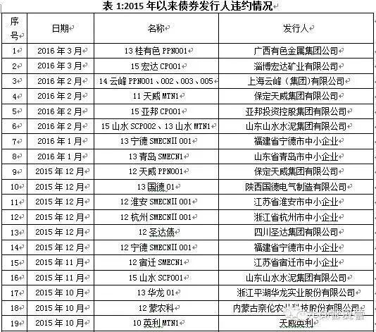在宏观经济下行、企业经营绩效承压的环境下,高杠杆水平难以维持,去杠杆过程中不可避免出现违约事件。信用风险一直成为债市不可回避的投资风险,2015年有25个债券发行人发生违约,主要违约事件集中于下半年。市场投资者针对2016年的信用违约情况早有心理准备,调查显示86%的投资者认为公募债券违约事件要超过10件。2016年开年以来,信用风险暴露有所加快,已有8个债券发行人发生兑付违约事件,涉及山水水泥、保定天威、宏达矿业、亚邦投资、上海云峰、广西有色金属等民企和国企。另外,还有四个违约概率较高的项目,依次为武汉国裕、谷神生物、春和集团、雨润等四个发行人已经出现经营困难或者银行信贷逾期的情况,未来其存续债券兑付面临较大违约概率。