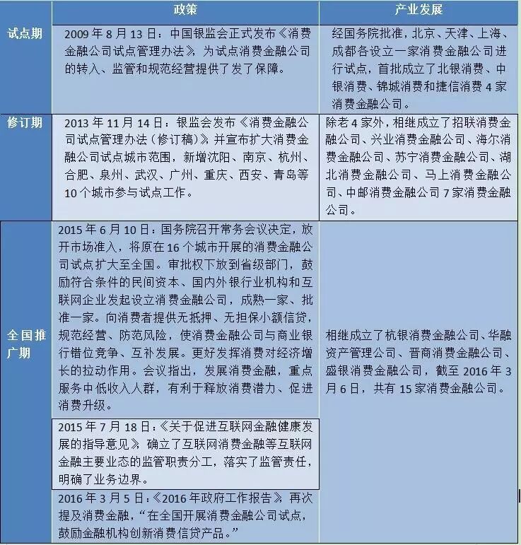 从国家层面看,国家意在鼓励消费金融领域的创新发展,适应消费升级趋势,增强消费拉动经济增长的基础作用。截至2016年3月6日,最近成立杭银消费金融公司、华融资产管理公司、晋商消费金融公司、盛银消费金融公司,共有15家消费金融公司。