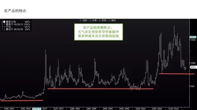 农产品的周期特点,总结起来就两句话,天气决定供给,传导价格卖出,需求和成本决定价格的底线。很多农产品再往下打就面临这个问题,你要明白需求和成本目前来讲是在下移的,不是在上移的。谁知道农产品在过去的5、6年,甚至7、8年过程中,还有一个新增的需求变量是什么?农产品工业造成的,农产品造成工业化需求的假想,然后大家突然间发现工业性的需求增量没了,光靠你们吃,光靠饲料你们觉得能消化多少农产品?这个时候你们会发现供给是过剩,供给和需求的成本一定要打穿,打到很低才会找到底部,然后看天气吃饭。