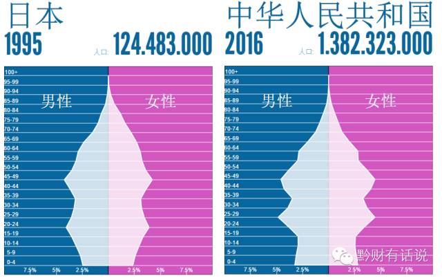 2016年中国和1995年日本的年龄结构对比图