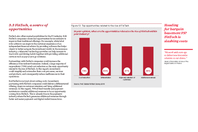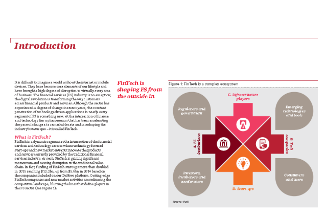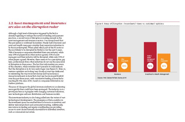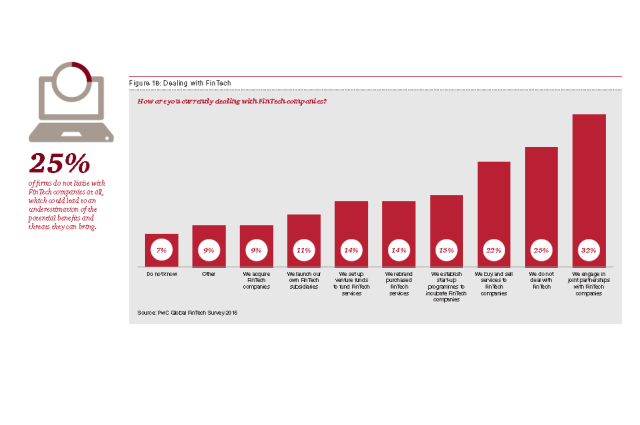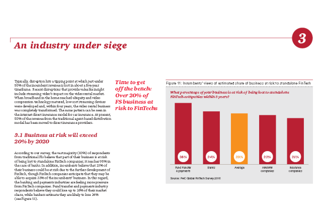 最近,一份新出炉的普华永道的报告中显示,83%的金融服务公司认为他们商业中的某些特定方面正处于众多金融科技创业公司带来的创新冲击中,95%