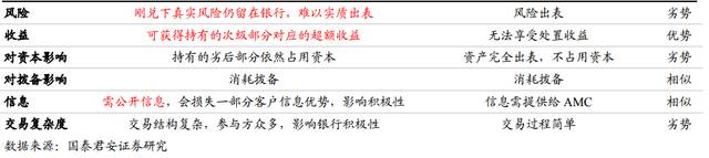 ①刚性兑付预期下难以将风险实质性出表;②对释放资本作用有限;③需公开部分客户信息,影响发行积极性;④交易结构复杂,参与方众多,需要相互磨合协商,前期费时费力。